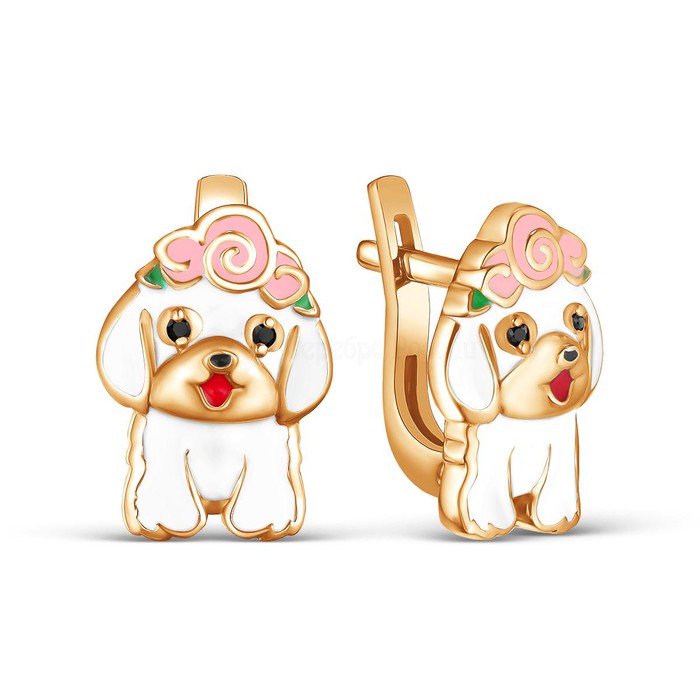 Серьги детские из золочёного серебра с эмалью и фианитами