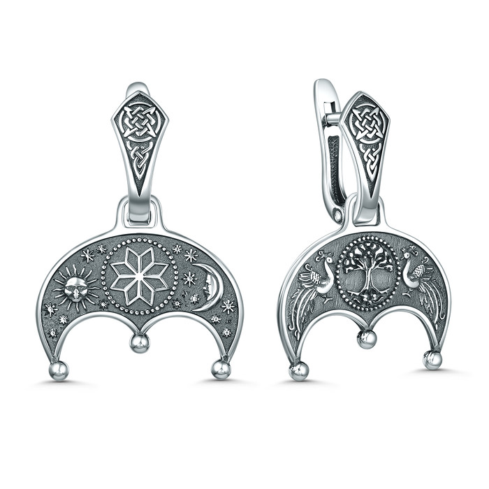 Серьги двусторонние из чернёного серебра - Лунница (2в1) 2100063