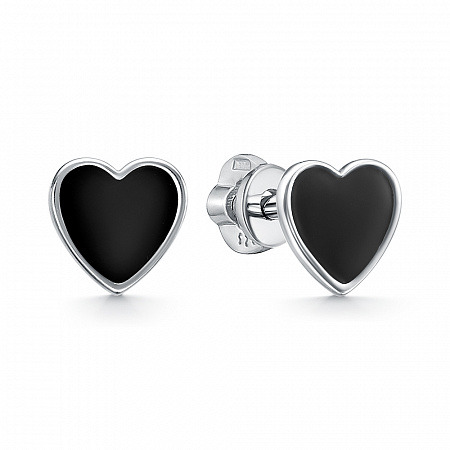 Серьги эмаль черная родированные серебро 925*