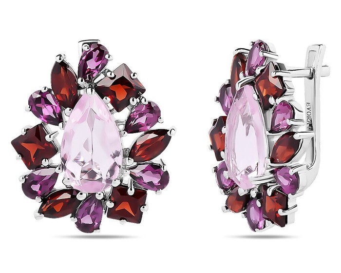 Серьги, арт.658575 Серебро Серебро 925, 8,3 гр., гранат , морганит , родолит