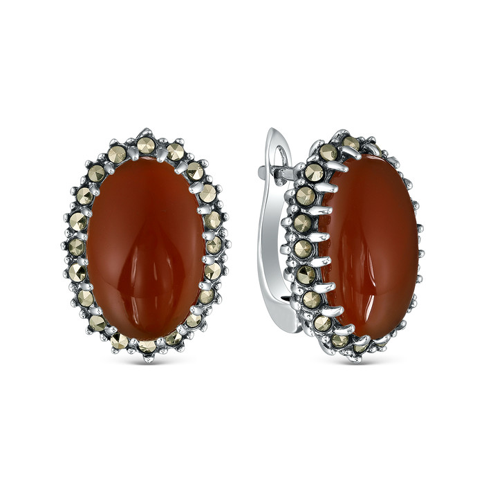 Совместные покупки Магнитогорск Ювелирные украшения и бижутерия Серьги — Серьги из чернёного серебра с натуральным агатом и марказитами 925 пробы HE0489-