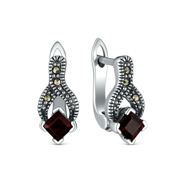 Совместные покупки Магнитогорск Ювелирные украшения и бижутерия Серьги — Серьги из чернёного серебра с натуральным гранатом и марказитами 925 пробы HE040