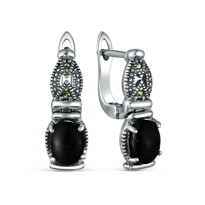 Совместные покупки Магнитогорск Ювелирные украшения и бижутерия Серьги — Серьги из чернёного серебра с натуральным ониксом и марказитами 925 пробы HE0250