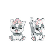 Серьги детские из серебра с эмалью и фианитами родированные - Собачки 925 пробы