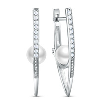 Серьги из серебра с культивированным жемчугом родированные 311093
