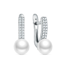 Серьги из серебра с культивированным жемчугом и фианитами родированные 925 пробы