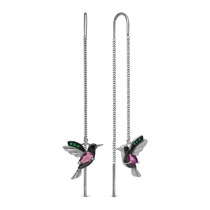 Серьги-продёвки из серебра с пл.кварцем цв.родолит, цв.чёрный и фианитами родиро
