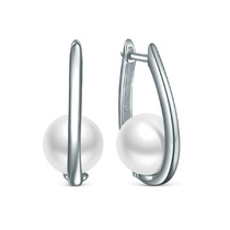 Серьги из серебра с белым имитированным жемчугом родированные 2-145р1001