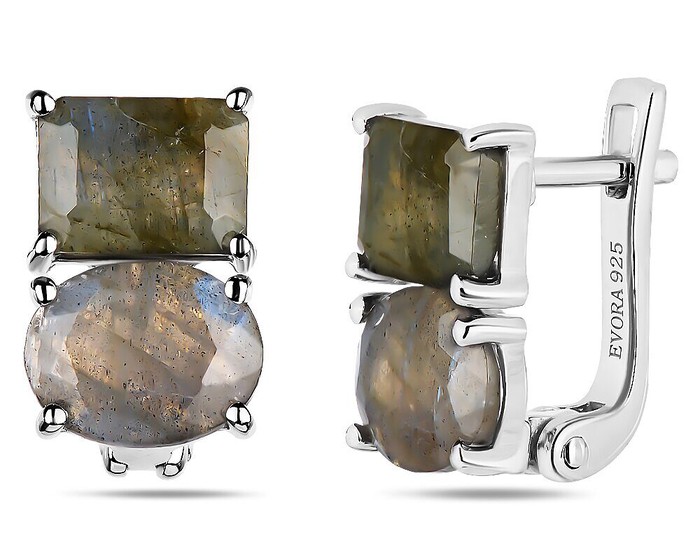 Серьги, арт.648427 Серебро Серебро 925, 4,16 гр., лабрадорит