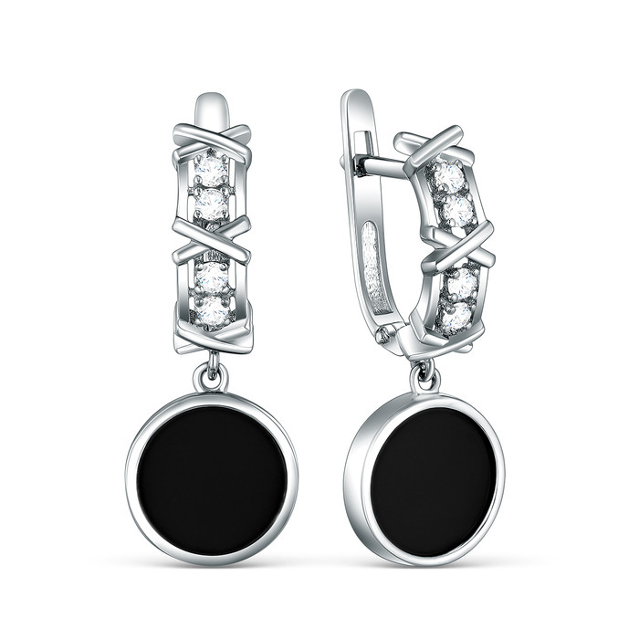 Совместные покупки Магнитогорск Ювелирные украшения и бижутерия Серьги — Серьги из серебра с агатом и фианитами родированные 925 пробы С-4321-Р-ча
