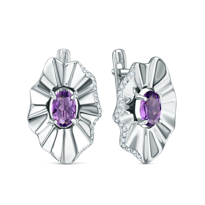 Совместные покупки Магнитогорск Ювелирные украшения и бижутерия Серьги — Серьги из серебра с аметистом и фианитами родированные 2-3871-001