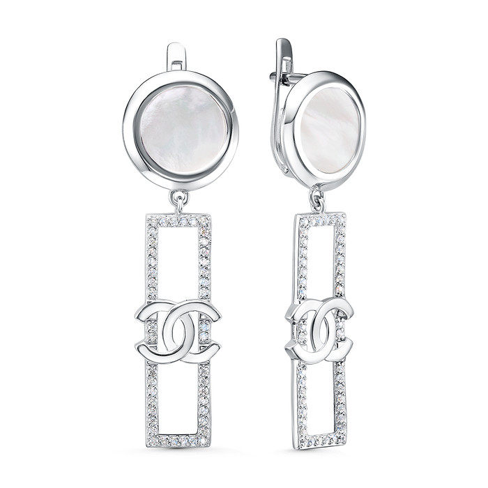 Совместные покупки Магнитогорск Ювелирные украшения и бижутерия Серьги — Серьги из серебра с белым перламутром и фианитами родированные 925 пробы С-4532-