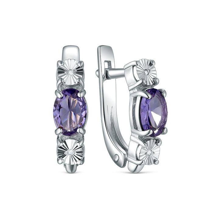 Серьги из серебра с бриллиантами и плавленым кварцем родированные 925 пробы 2-43