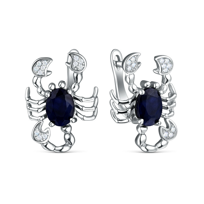 Серьги из серебра с cапфиром и кубическим цирконием родированные - Скорпионы 925