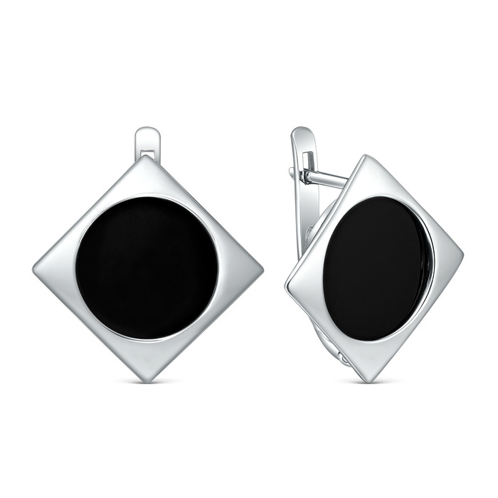 Совместные покупки Магнитогорск Ювелирные украшения и бижутерия Серьги — Серьги из серебра с чёрным агатом родированные 925 пробы С-4039-Р-Ча