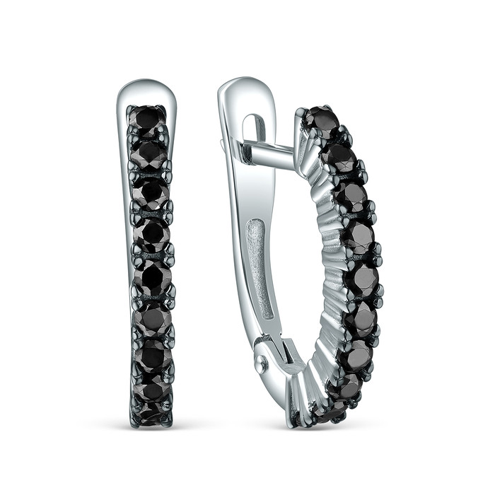 Серьги из серебра с чёрными фианитами родированные 925 пробы с-7237р216