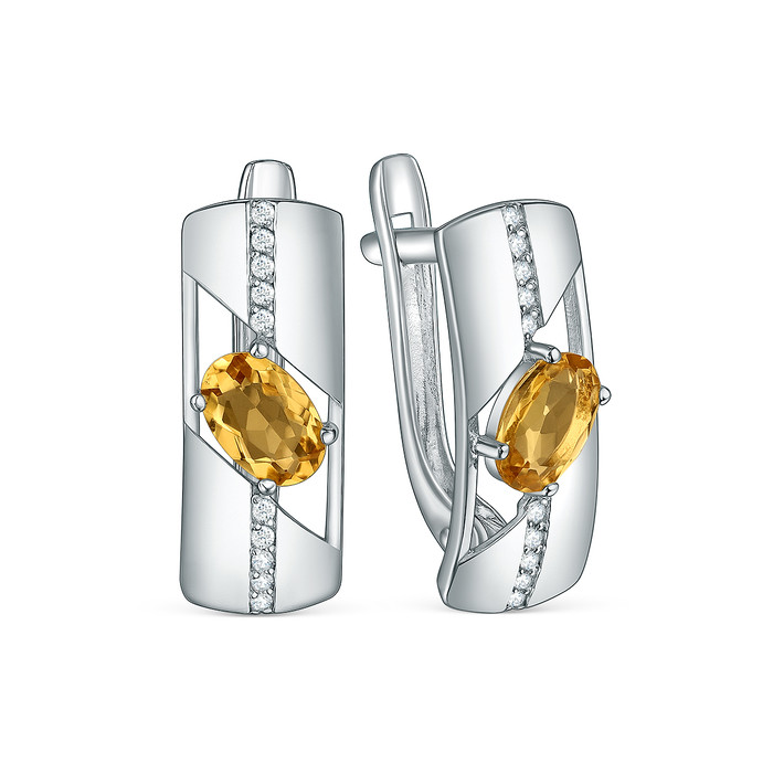 Совместные покупки Магнитогорск Ювелирные украшения и бижутерия Серьги — Серьги из серебра с цитрином и фианитами родированные 2-3906-001