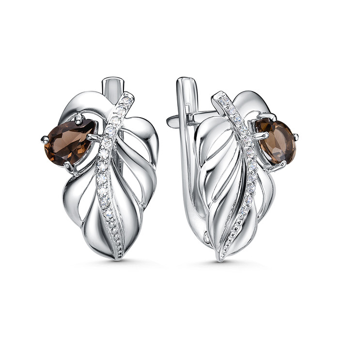 Совместные покупки Магнитогорск Ювелирные украшения и бижутерия Серьги — Серьги из серебра с дымчатым кварцем и фианитами родированные 2-4148-001