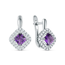 Серьги из серебра с аметистом и фианитами родированные С50083р401