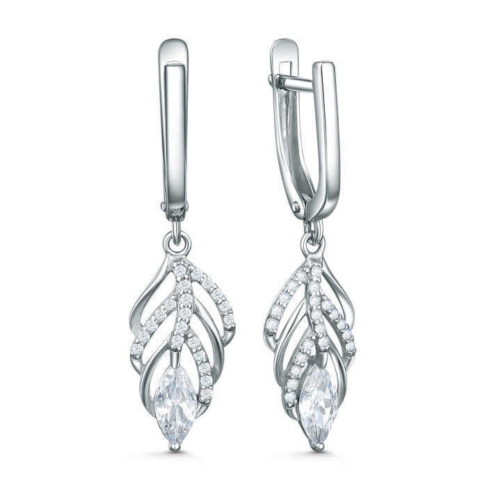 Серьги из серебра с фианитами родированные 11-2080