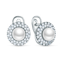 Серьги из серебра с культивированным жемчугом родированные 311093