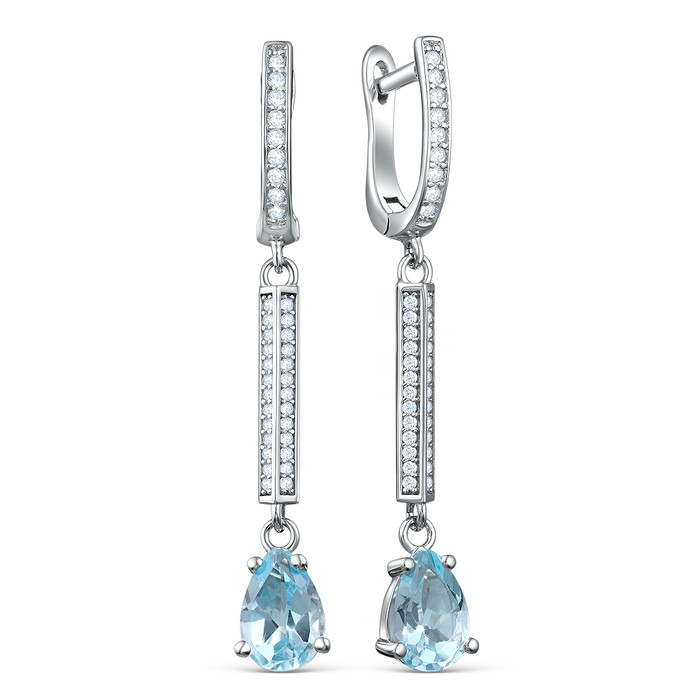 Серьги из серебра с голубым топазом и кубическим цирконием родированные 925 проб