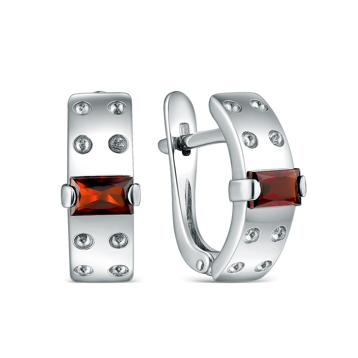 Серьги из серебра с гранатом родированные 925 пробы 04-202-0439-09