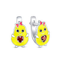 Серьги детские из серебра с эмалью и фианитами родированные - Авокадо 925 пробы