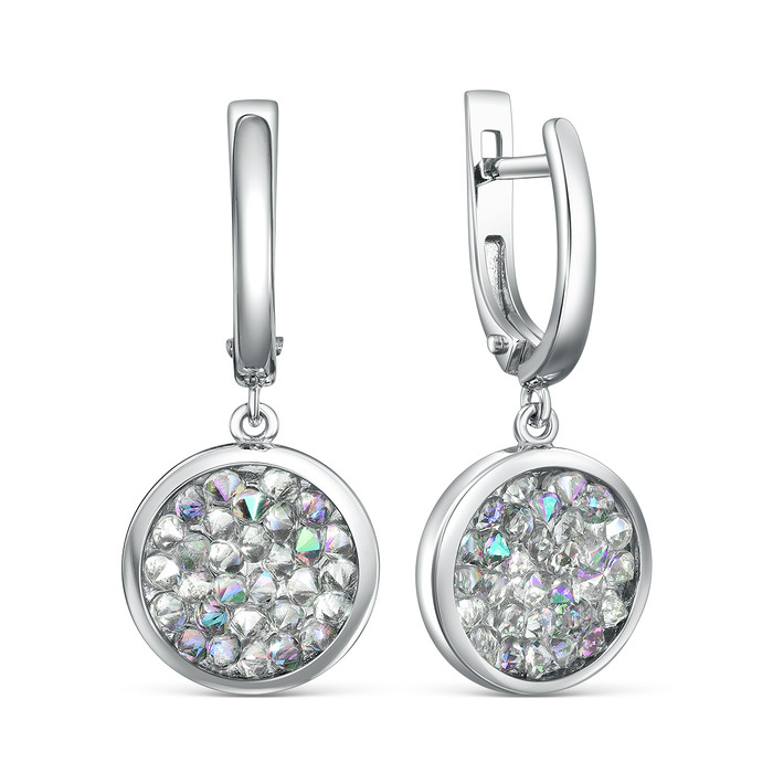 Серьги из серебра с кристаллами Премиум Австрия Радуга родированные 925 пробы С-