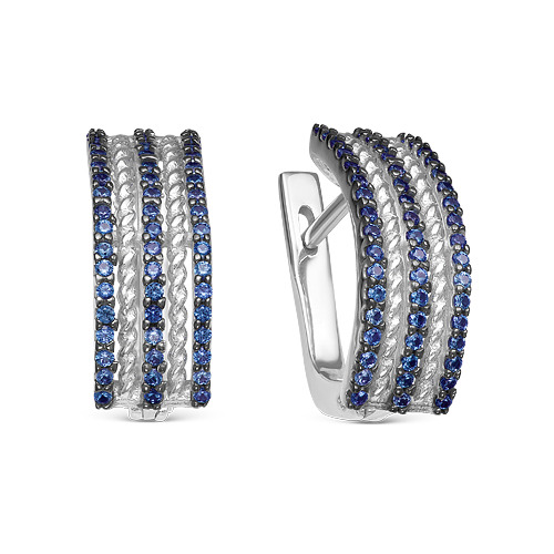 Серьги из серебра с кварцем сапфир родированные 925 пробы с-7163р108