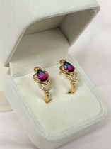 Серьги из серебра с пл.кварцем цв.родолит родированные