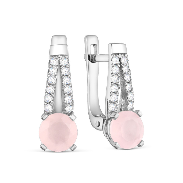 Серьги из серебра с розовым кварцем и фианитами родированные 925 пробы 20033р121