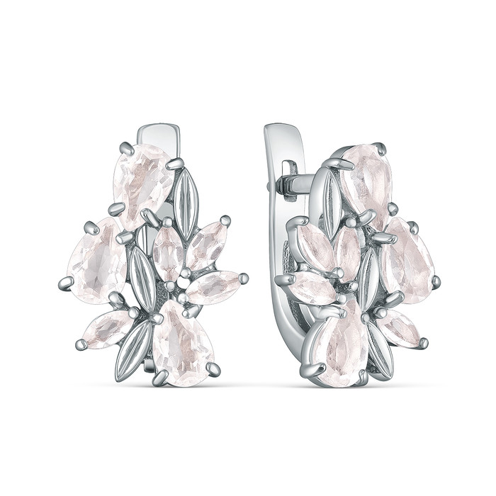 Серьги из серебра с розовым кварцем родированные С-3847р421