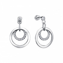 Серьги из серебра с синт.муассанитом и фианитами родированные