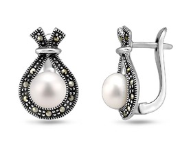 Серьги, жемчуг , марказит, SL-AGA616