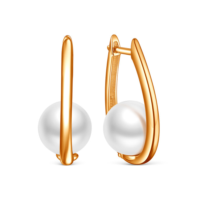 Совместные покупки Магнитогорск Ювелирные украшения и бижутерия Серьги — Серьги из золочёного серебра с белым имитированным жемчугом 925 пробы 2-145з1001