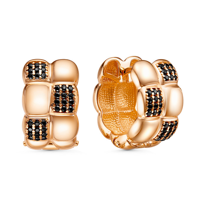Серьги из золочёного серебра с чёрной шпинелью 925 пробы С50172з416