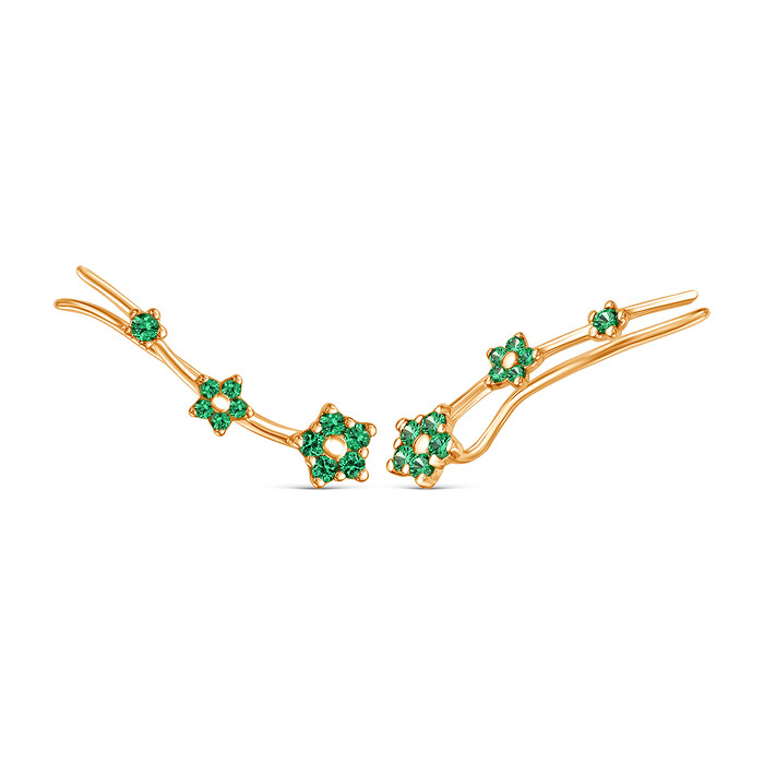 Серьги каффы из золочёного серебра с фианитами - Цветы М2-019з232