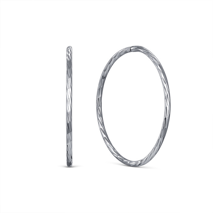 Серьги-конго с алмазной обработкой из серебра родированные - Диаметр 3 см СК-300