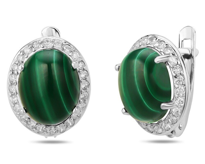 Серьги, арт.657961 Серебро Ag 925, 2,72 гр., малахит прес.