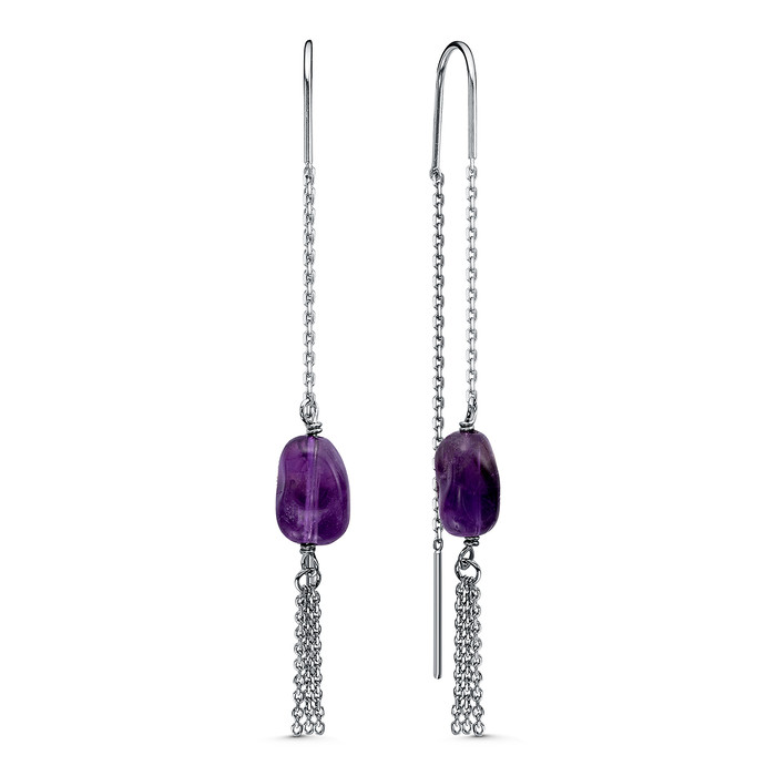 Совместные покупки Магнитогорск Ювелирные украшения и бижутерия Серьги — Серьги-продёвки из родированного серебра с аметистом 925 пробы 15591AMRH