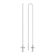 Серьги-продёвки из серебра с фианитами родированные - Кресты (длина всей цепи 19