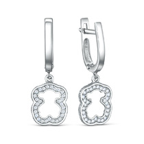 Серьги с фианитом родированные серебро 925*