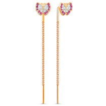 — Серьги-продёвки из золочёного серебра с фианитами и родированием - Бабочки с-001