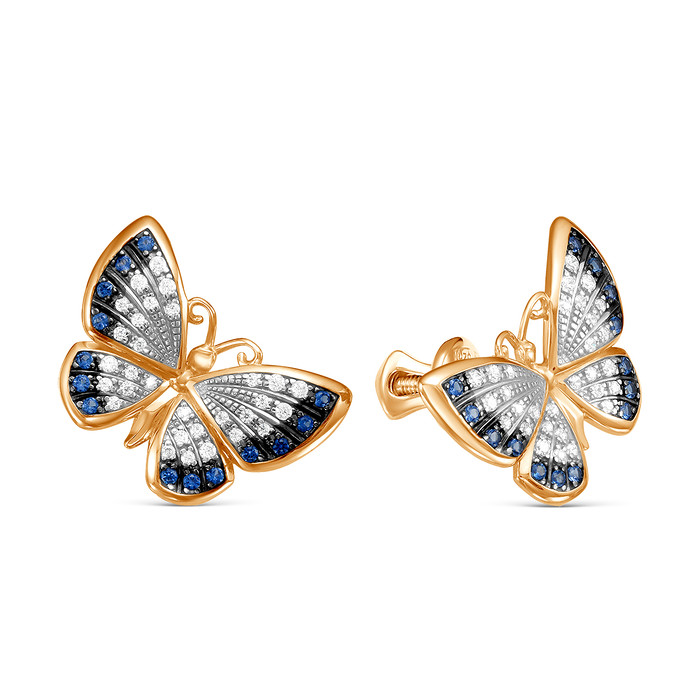 Совместные покупки Магнитогорск Ювелирные украшения и бижутерия Серьги — Серьги-пусеты Бабочки из золочёного серебра с фианитами 925 пробы п6-440-2з208