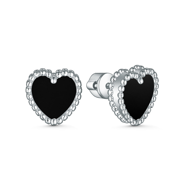 Совместные покупки Магнитогорск Ювелирные украшения и бижутерия Серьги — Серьги-пусеты из серебра с чёрным ониксом родированные - Сердца 2-032р442