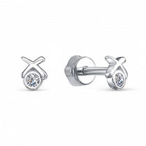 Серьги-пусеты из серебра с фианитами родированные