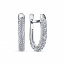 Серьги-пусеты Ромбы из серебра с фианитами родированные 925 пробы 2-250р200