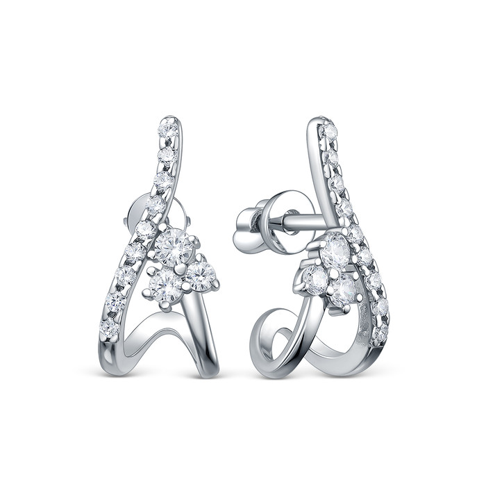 Серьги-пусеты из серебра с фианитами родированные 925 пробы 12-1427р