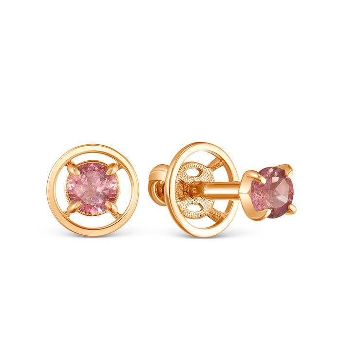 Серьги-пусеты из золочёного серебра с нат.турмалином мульти 925 пробы с-2450зс42